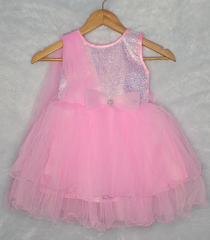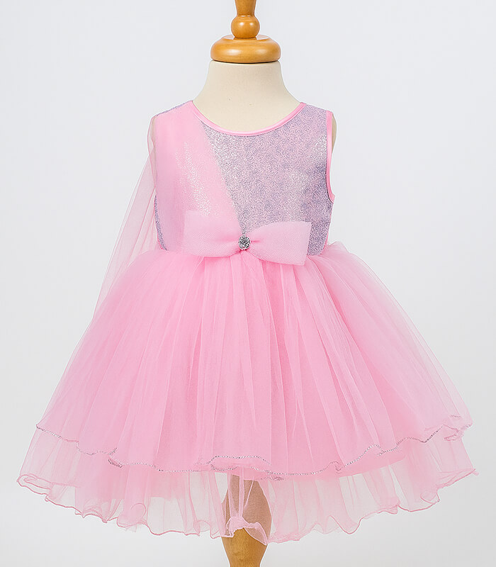 Baby Pink Princess | Glitter Bow Net Frock for Girls (1–4 Years)