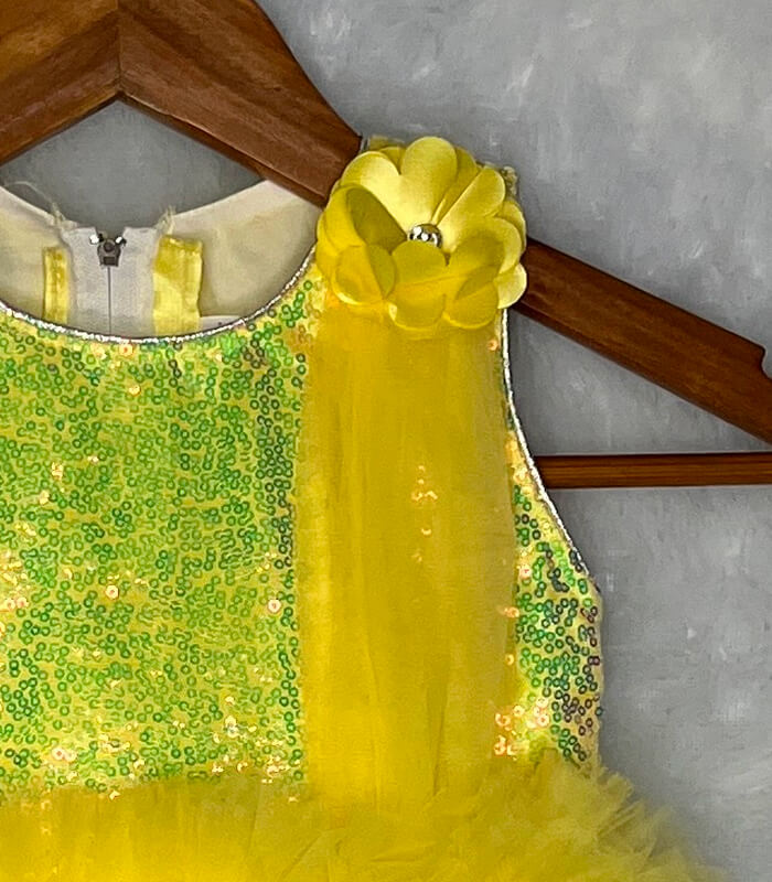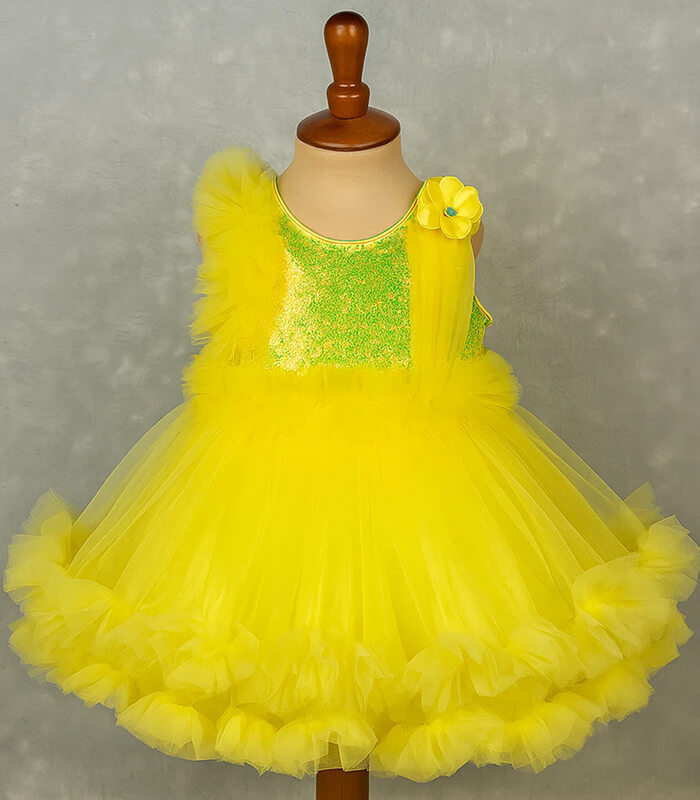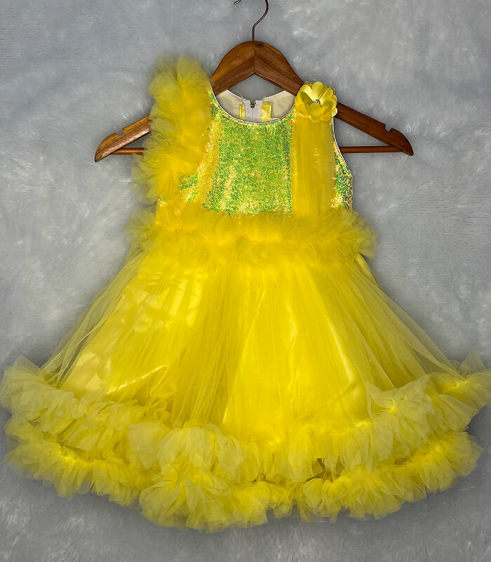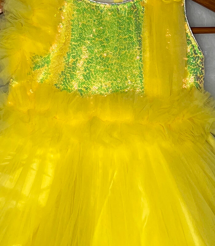 Yellow Ruffle Net Frock with Sequin Bodice for Baby Girls (1–4 Years)